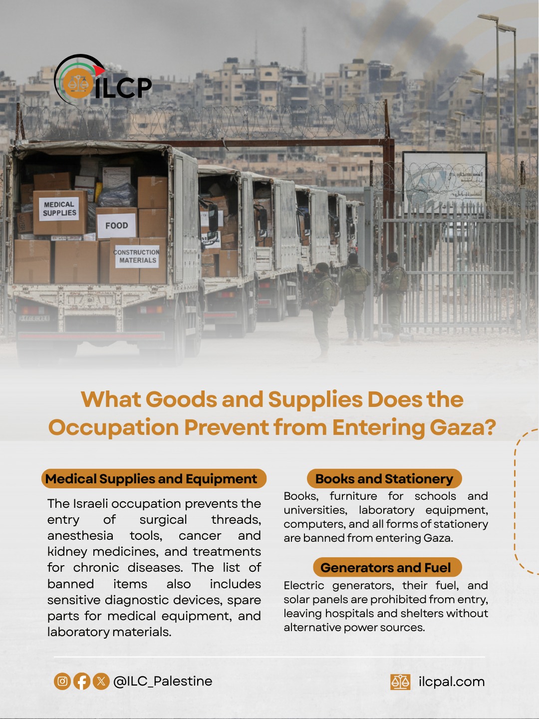 The restrictions imposed on the entry of essential goods into the Gaza Strip constitute a clear violation of international humanitarian law