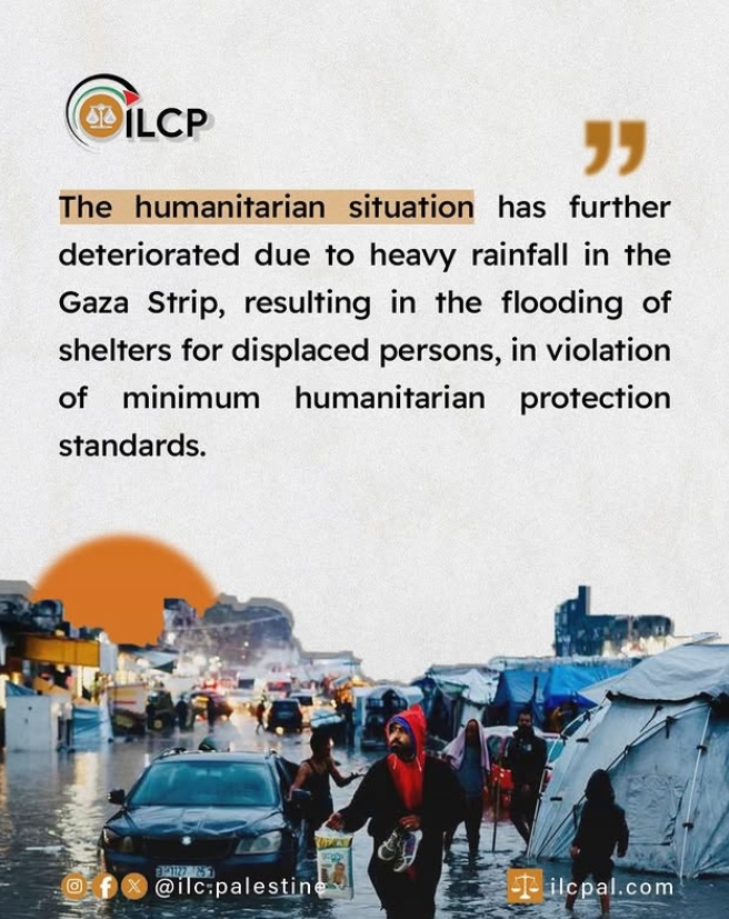 The humanitarian situation in Gaza has worsened as heavy rainfall flooded shelters for displaced persons, violating minimum humanitarian protection standards